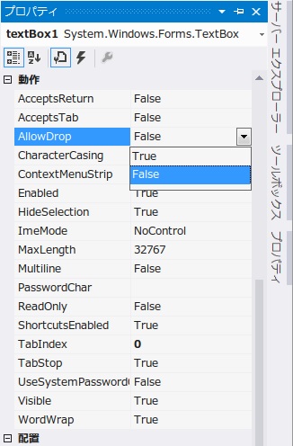 上図のようにTextBoxのプロパティを開いて、